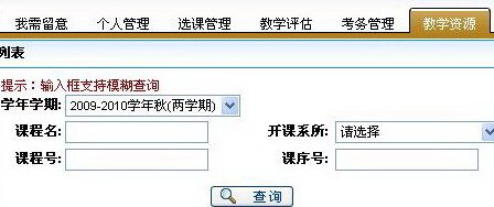 11. 课表查询:进入“教学资源”标签项,单击左侧边栏“课程课表”,学生可以查询本学期开设的全部课程;
