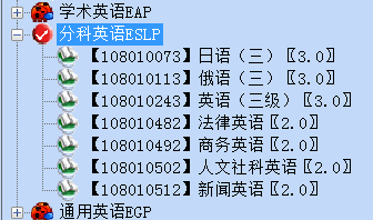 答:需要到考务科(厚302)申请做重修课程替代。举例:分科英语课组中(下图),《法律英语》不及格,重修选课时应重新修读该门课程。如修读确有困难,可以修读该课组的其他课程,如《商务英语》等。但为保证成绩单没有必修课不及格记录,以通过毕业审核。故需要做课程替代。替代后,《商务英语》的分数会被记入到《法律英语》成绩条上,并在分数后显示“重”,《商务英语》不再在成绩单上显示。体育课组、计算机课组等出现类似情况也是参照此做法执行。