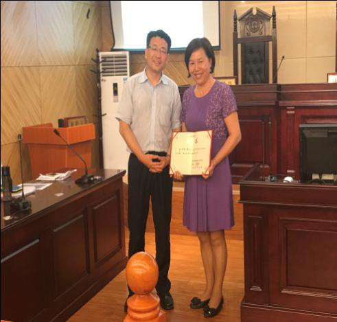王强副处长则结合自己在德国的学习经历,着重强调了实践教学在我国法学教育中应有的地位。他表示,知产诊所同学的入门素养高,在经过以刘瑛老师为代表的优秀老师的精心栽培下,正在成为一群具有扎实法学知识和广博法学情怀的学子,希望同学们能够主动学习、珍惜实践教学的机遇、弘扬沿袭法律诊所的公益品德。并且,随着习总书记对我校的考察和校方的不断重视,我校实践教学成果必将实现学术化、系统化、数据化,走向世界。借此机会,王强副处长还为刘瑛教授颁发了“北京市西城区人民法院专家顾问”的聘书。