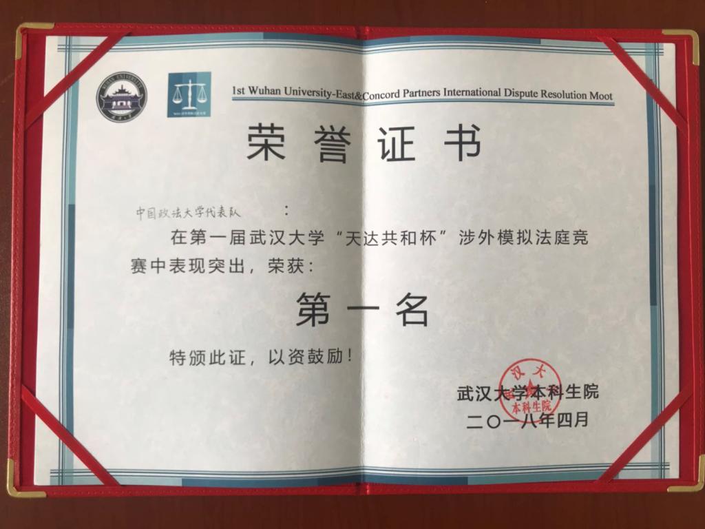 第一届武汉大学“天达共和杯”涉外模拟法庭竞赛于4月13日至15日在武汉大学法学院举行。经过激烈的角逐,我校代表队凭借过硬的实力先后战胜厦门大学、北京大学、西南政法大学挺进决赛,又在决赛中战胜“东道主”武汉大学获得全国冠军。