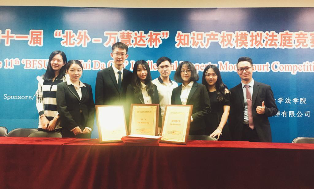 2018年5月26日至27日,第十一届“北外—万慧达杯”知识产权模拟法庭大赛在京举行。本届比赛有来自中国、美国、澳大利亚等国家以及中国台湾地区的众多强队参加。我校代表队以积分赛第一的成绩进入淘汰赛,并最终揽获亚军、最佳书状奖、最佳辩手奖等三项大奖。汪玉洁同学凭借其稳定的发挥和精彩的表现获得最佳辩手奖。